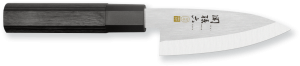 La poignée hexagonale du couteau Kinju est en bois lamellé renforcé pour une sensation agréable lors de la coupe.